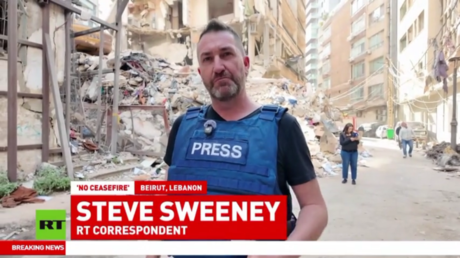 RT’s Steve Sweeney, who, along with his cameraman Ali Rida, was caught up in this week’s Israeli strikes on central Beirut, reports from the Lebanese capital on the aftermath, where shattered residential buildings, children’s school bags and household belongings lie scattered in the rubble, and the seafront is filled with displaced families sheltering in makeshift tents.